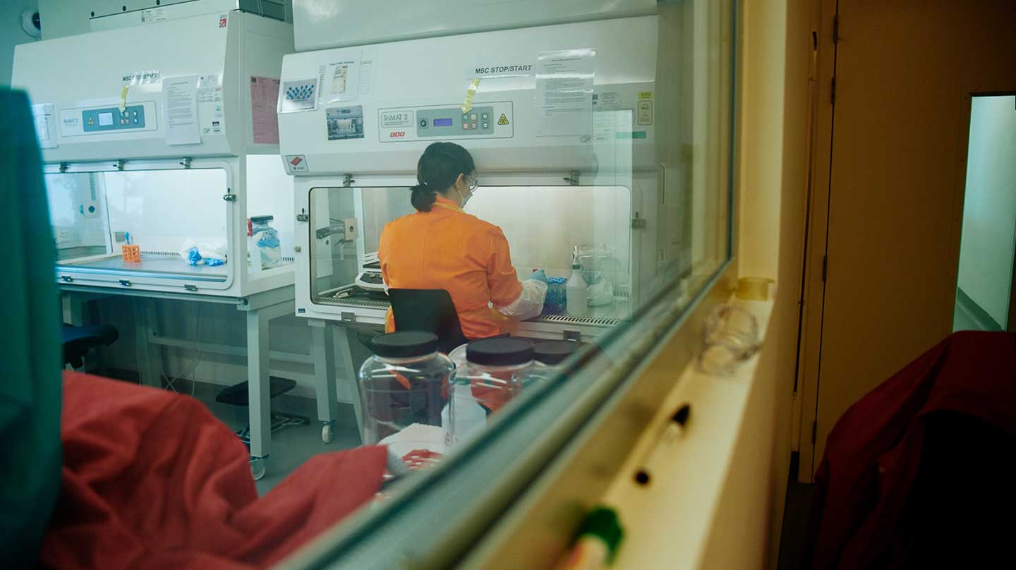 “We had the benefit of access to CL3 labs and could take receipt of primary COVID samples, but none of the team had ever worked on an aerosol virus which was killing people in this country. Sometimes it was hard driving into work, hearing about deaths on the news, knowing you were going to work on the same virus. The gravity of the situation was almost overwhelming at times. Everything was confidential, so we couldn’t talk about it. We were pinching PPE from other labs, not able to explain to other colleagues why we needed it.”
