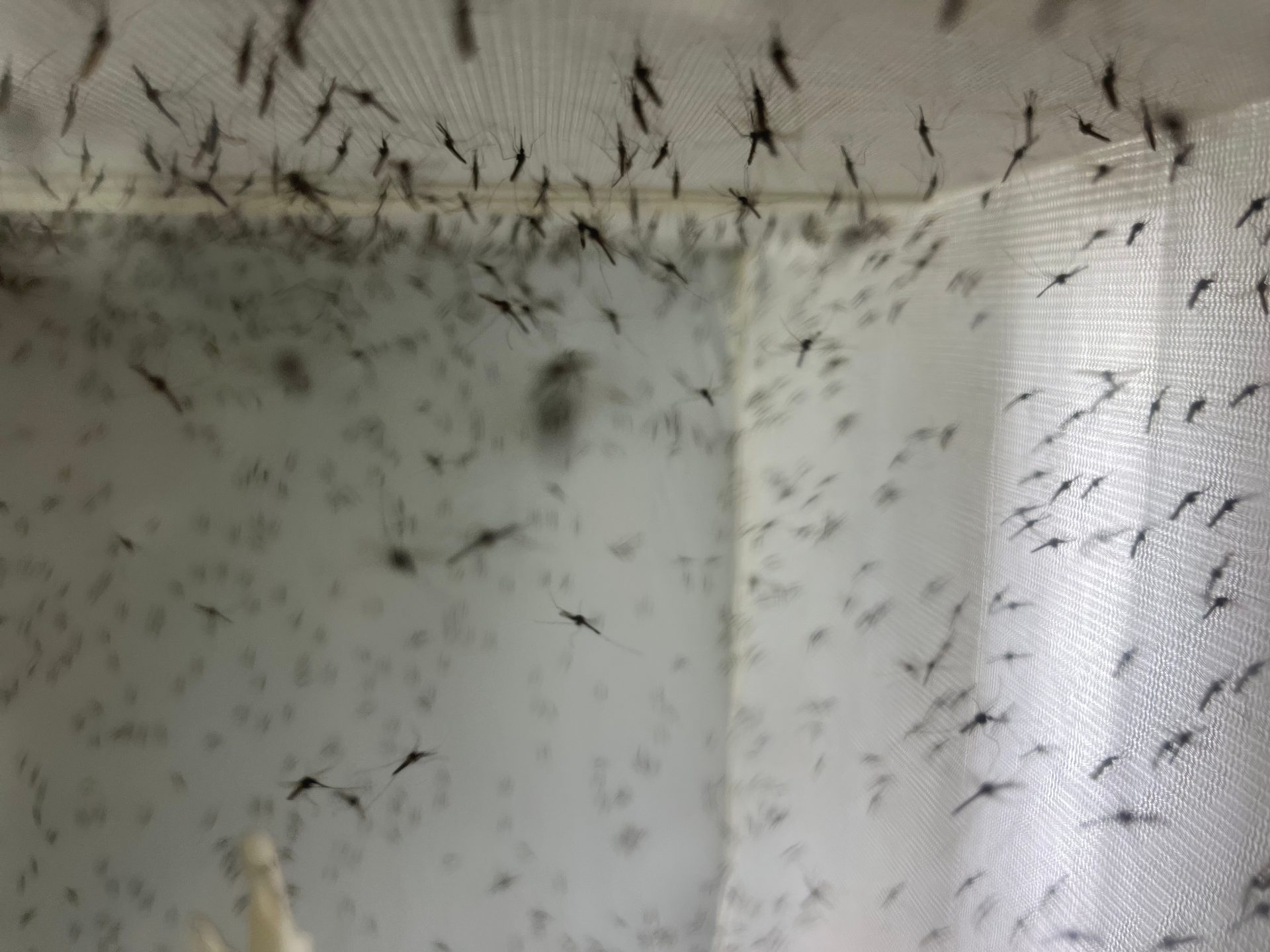 Anopheles coluzzi mosquitoes in the Insectary at Sanger. Credit: Rachael Smith / Wellcome Sanger Institute.